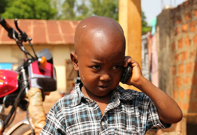 Un enfant téléphone en Guinée – Droits réservés Thierry Barbaut – Info Afrique